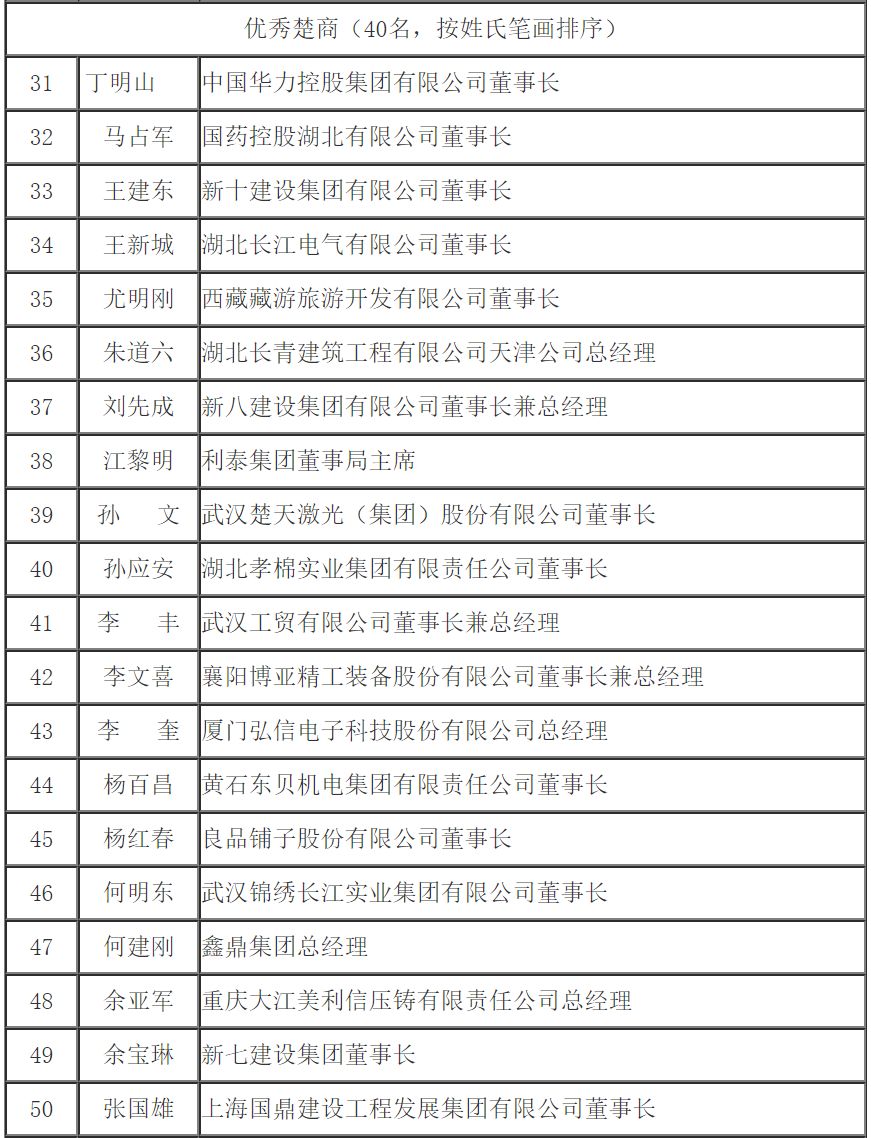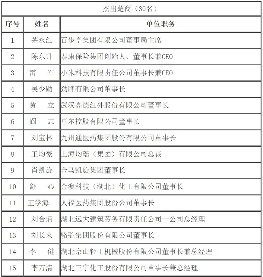 楚商大會70名優(yōu)秀楚商名單湖北程力汽車集團程阿羅被授予十大杰出楚商