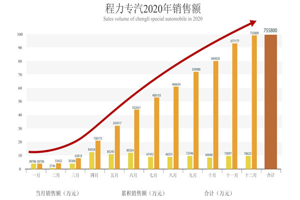 湖北程力公司在2020年初制定的專汽產(chǎn)值原本是完成70億目標,但隨著一場突如其來的疫情災害影響,直接停產(chǎn)一個半月,耽誤產(chǎn)值13億元;對此,以程阿羅總經(jīng)理為首的高層團隊精準研判科學施策,面對疫情不畏困難,將沖刺目標調(diào)高到75億;一手抓疫情防控一手抓復工復產(chǎn),積極應對逆勢而上,大膽創(chuàng)新及時推出高端負壓救護車、醫(yī)療廢棄物轉(zhuǎn)運車、疫情消毒車、應急搶險車、核酸取樣檢測車等適銷對路的緊缺產(chǎn)品,馳援全國及國際疫情防控第一線,與病毒擴散搶時間、奪戰(zhàn)場,把耽誤的時間補回來,把失去的市場占領回來。 2020年三月份以來,湖北程力專汽及應急產(chǎn)品的生產(chǎn)銷售一直持續(xù)快速的攀升,平均增長速度超過了20%,遙遙領先于同行業(yè)的其他生產(chǎn)廠家,高于歷史同期增長水平,打了一個漂亮的翻身仗,截止12月25日上午10:38分,專汽產(chǎn)值提前6天順利完成75.58億,交出了一份令人滿意的答卷。