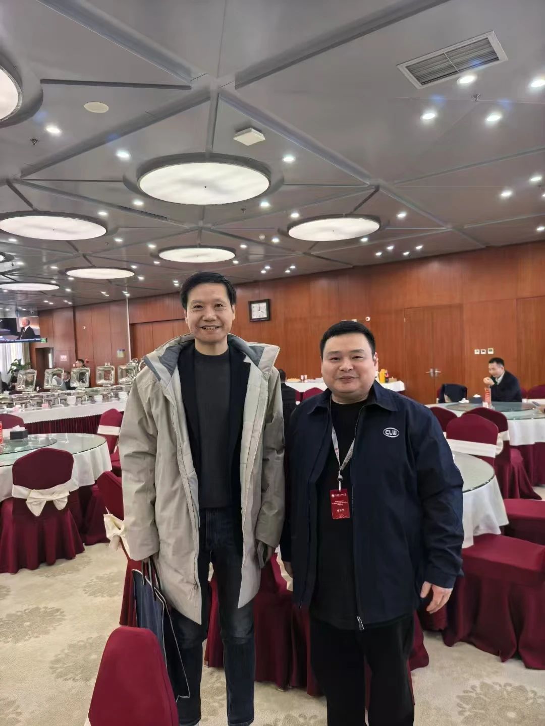 程力汽車集團董事長程阿羅(左)與小米集團董事長兼首席執行官雷軍(右)合影紀念