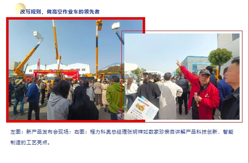 “科技是第一生產力,創新則為企業發展壯大的根基” ,在湖北程力汽車集團,發展新質生產力新興產業蔚然成風、方興未艾;青春程力每天迸發出蓬勃的內生動力,各生產經營單位爭先恐后搞研發強創新,并取得顯著成效。       4月1日上午,春光明媚暖陽和煦,程力科奧高空作業車專業廠在集團專用汽車工業園,舉行了4.5千伏特高壓帶電高空作業車新產品戶外現場培訓及促銷推薦會,這一爆款產品的上市,深受銷售經理喜愛和用戶追捧,現場數百人參加了盛會。