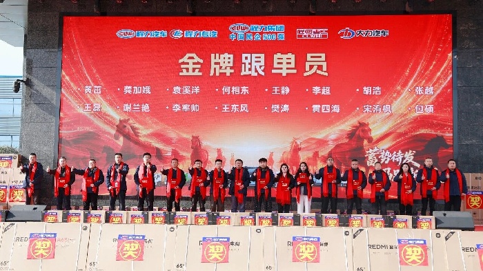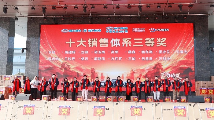 程力的每一步發展,都離不開合作伙伴的鼎力支持與攜手同行。接下來頒發的是“最佳供應商”獎項,此榮譽授予在物料品質、交付效率、合作協同中表現優異的合作伙伴,他們是程力產業鏈上的重要伙伴,更是集團高質量發展的堅實后盾。 銷售與經營齊飛,服務攜創新共贏! 銷售與經營體系表彰重磅登場。從金牌跟單員到十大銷售體系各獎項,從經營激勵獎、進步獎到貢獻獎,階梯式榮譽與豐厚獎品——米家冰箱、空氣炸鍋、REDMI電視、筆記本電腦乃至出國游,充分彰顯集團以績論獎、重獎功臣的鮮明導向,激勵全員勇攀業績高峰。