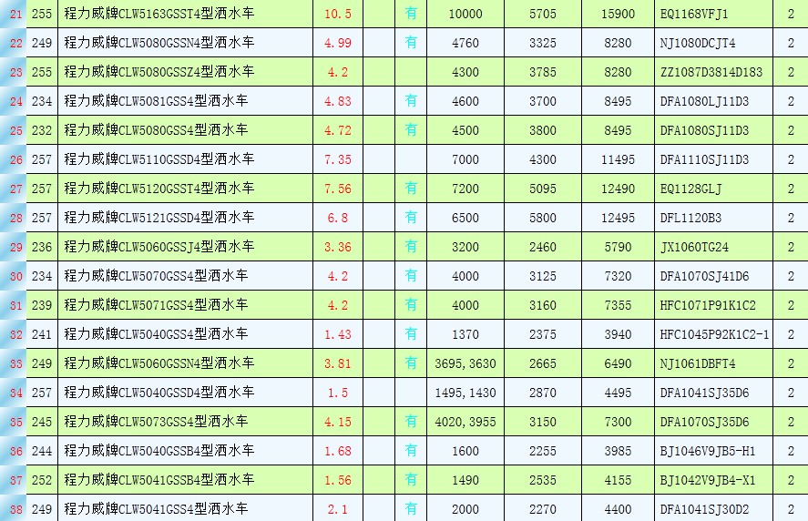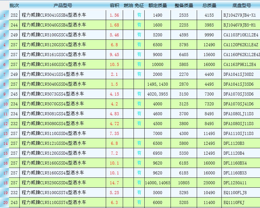 平板運輸車,混凝土攪拌車,隨車吊,垃圾車,油罐車,灑水車