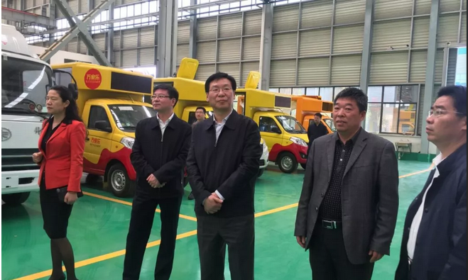 一行領導隨后依次參觀了宣傳車、攪拌車及轎運車車間,車間里各類成品車擺放整齊,各類車型的外觀設計充分滿足了顧客的需求,做到美觀與實用高度統一,車型外觀的顏色設計打破傳統的中規中矩,鮮艷亮麗的色彩讓人耳目一新!各位領導連連贊許,梁主席親切詢問車間各類車型訂單情況,李副總及車間負責人向各位領導介紹2018年重工部分熱銷車型全年訂單已滿。車間負責人同時向各位領導講解各車型的設計原理及優勢,梁主席在轎運車車間看到新型高端五車位轎運車,相比傳統的轎運車,車位減少但安全性大大提升,梁主席鼓勵重工要把生產做好,做快,充分滿足市場需求。