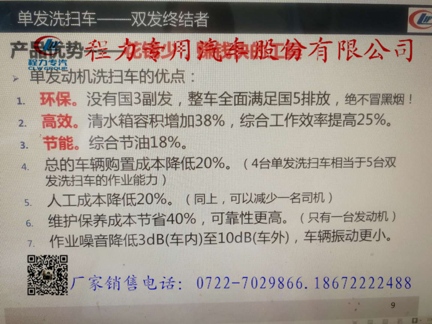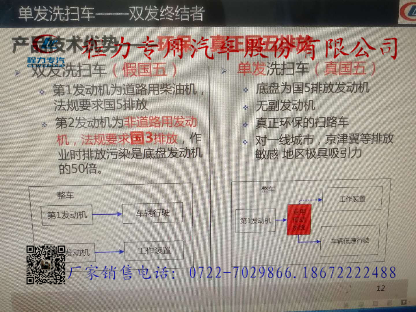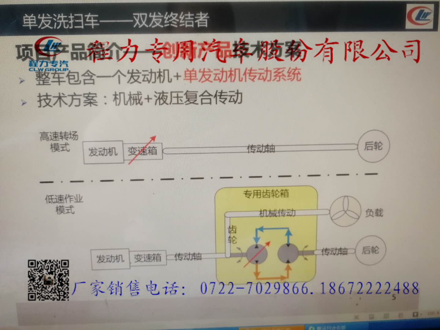 導讀:湖北程力掃路車第三屆交流大會新品發布《單發動機洗掃車》。湖北程力掃路車新品發布會上鄧博士講解單發洗掃車工作原理,單法洗掃車,真正國五排放,較雙發洗掃車…