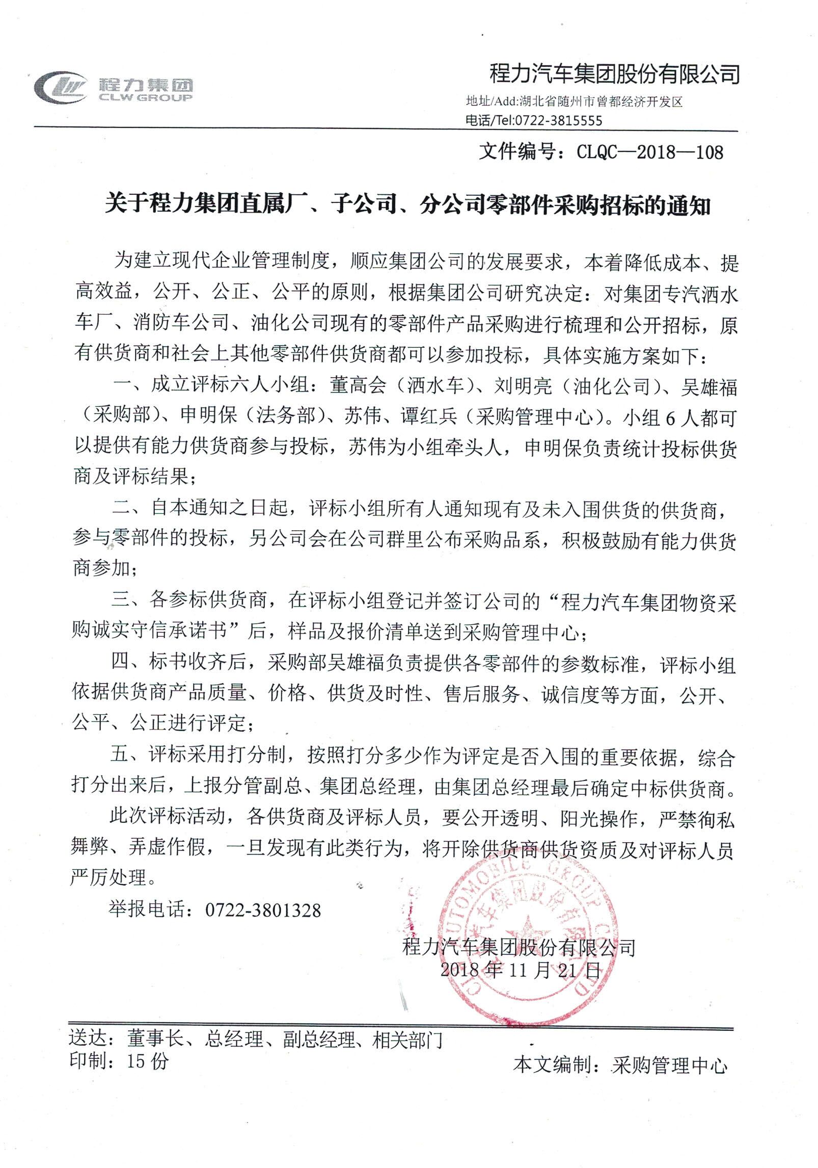 湖北程力汽車所有零部件招投標(biāo)活動公示