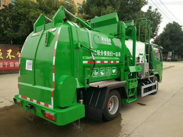 湖北程力國六5方多利卡福瑞卡餐廚垃圾車(廂式方罐)程力威牌CLW5073TCA6型餐廚垃圾車CLW5040TCALS6型餐廚垃圾車廠家配置: 國六東風多利卡D6餐廚垃圾車,玉柴140馬力/朝柴130馬力,云內126馬力,3308mm軸距,7.00R16鋼絲輪胎,原廠空調,電動玻璃,中控鎖;嘉善取力器,合肥油泵,中梅多路閥,江蘇液壓油缸;帶推鏟卸料,擠壓干濕分離;后蓋帶密封條液壓鎖緊;拉桿提升機可掛120/240L國標垃圾桶;后門鎖緊與開關防誤操作,提升機與上蓋、推鏟防誤操作;帶高壓清洗功能,液壓馬達,清洗泵,自回位巻盤,水槍;車身高位示廓燈/邊燈/作業照明燈。標配手控+電控操作,可選裝無線遠程控制。