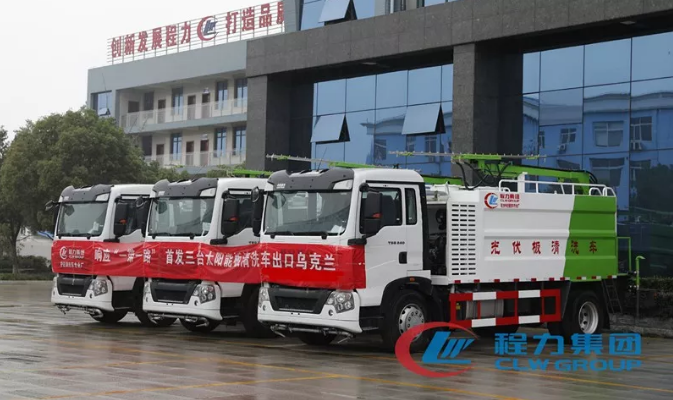 NO3:湖北程力護欄車專業廠生產的太陽能板清洗車科技風范出口烏克蘭,為中國的“一帶一路”貢獻程力智慧。