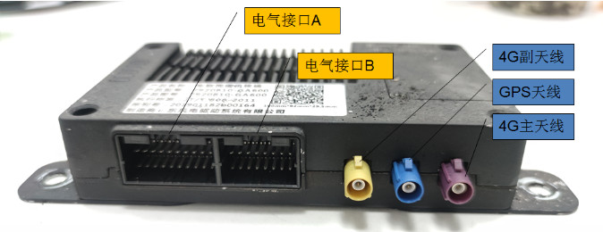 我們先來(lái)看看T-BOX的接口,大多數(shù)廠家的T-BOX接口有兩部分,一部分是與GPS天線和4G天線連接的“天線接口”,另一部分是與車輛電氣系統(tǒng)連接的“電氣信號(hào)接口”。