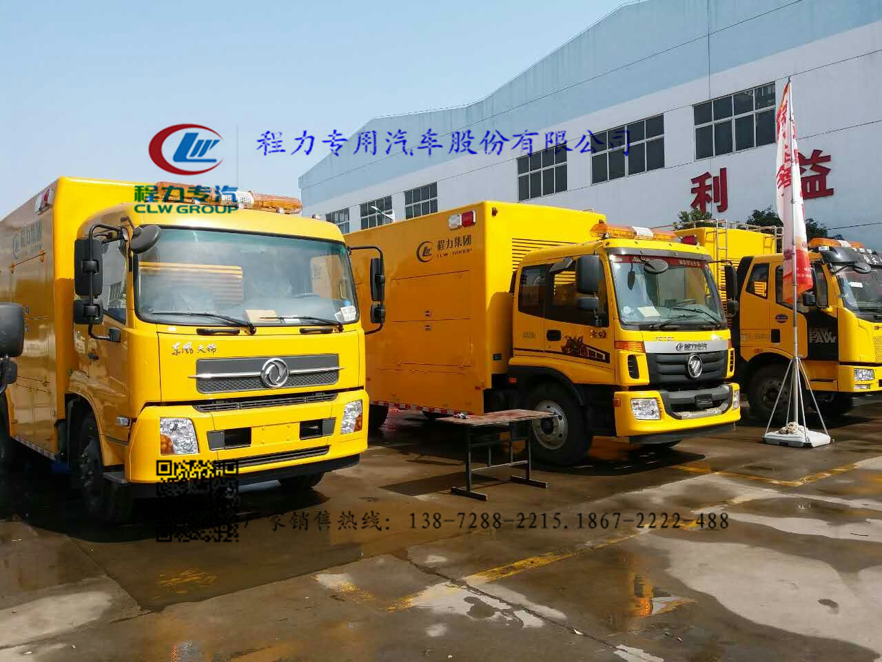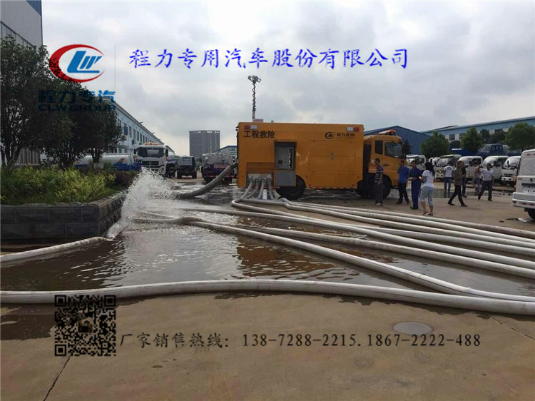 選裝配置:選裝行李架、爬梯、車頂工作臺;選裝不同形狀、結構的警示燈;選裝中隔斷(可選擇開門)、車身兩側可選開上掀門、盲窗、側開門;花紋鋁板;加裝設備工具柜、配電箱、發(fā)電機組、水泵、電焊機、空壓機等線路安裝外接電源系統(tǒng)、(室內燈光照明、探照燈、高桿照明燈等);繞線盤,還可根據(jù)用戶不同需求加裝不同的維修搶險設備、車身制作專用圖案或標識。 東風天錦工程救險車、抗洪救災車,搶險車,抗洪吸水車,抗旱車 程力專用汽車股份有限公司最新研發(fā)的搶險救援車,工程搶險車,抗洪吸水車,應急電源泵車,移動水泵車。該車排水量1000立方/小時,操作簡單,機動性強,真正實現(xiàn)了移動水泵的概念,設備可滿足緊急排水搶險的需要,并具備移動電源功能。 設備采用東風底盤改裝,總質量12.5噸,發(fā)動機功率127kw,排放標準達到國五標準,3.8米軸距,帶空調,方向助力,最大涉水深度600mm。 發(fā)電機備用功率120kw,額定輸出功率110kw,額定頻率50HZ,額電壓230/240V,康明斯發(fā)動機。電子調速,啟動電瓶,電瓶總閘。 車廂內專設接地樁頭,連接方便,在機組工作時,連接接地線,保護作業(yè)安全。機電設備有嚴密的防漏電保護措施。 控制系統(tǒng)采用智能控制,集中控制,中文界面,具有自動障礙保護功能,選用優(yōu)質電器元件,性能穩(wěn)定,安全可靠。 該車配備一臺一體式真空輔助自吸排污泵,流量1000立方/小時,電機功率55kw,揚程12米,吸程8米,安裝在車尾部,方便拆卸水管及出水,該泵無需灌水,無需額外增加水環(huán)泵輔助抽真空,性能好,出水快,水泵啟動采用軟啟動。抽水管為兩個八寸管,采用美國進口透明水管,質量輕,拿取方便,配3.5米長水管4根。接頭都采用東方式快速接頭,使用方便,密封效果好,每個進水口配置鴨嘴式接頭,實現(xiàn)低水位抽吸作業(yè)。各進水口配90度彎頭。 排水口分為4個5寸出水口,每個出水口66米出水軟管,(33米每卷)軟管為快速接頭連接,操作方便,并在接頭出設有防松保險裝置,安全可靠。材質為雙面PVC,耐磨,耐壓。 發(fā)電機組:發(fā)動機備用功能120KW額定輸出功率110KW,額定頻率50HZ,額電壓230/400V,康明斯發(fā)動機,調速方式:電子調速,啟動電瓶,電瓶總閘