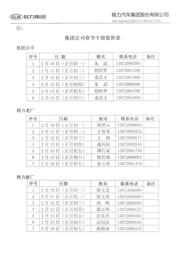 根據國務院辦公廳2024年放假有關規定,現將程力汽車集團公司2024年春節放假安排通知如下: