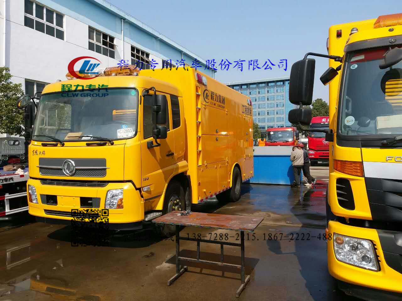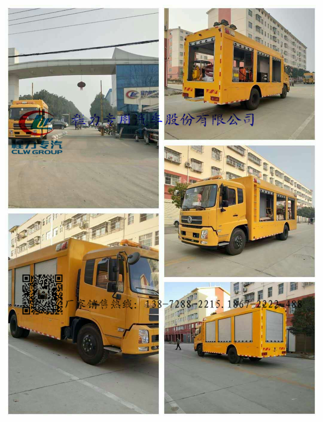 程力威工程救險(xiǎn)車 工程搶險(xiǎn)車、搶修車、救險(xiǎn)車又稱應(yīng)急電源泵車,是在專用底盤的基礎(chǔ)上,通過專業(yè)改裝搭載檢修人員,裝載工具和施工材料,以汽車發(fā)動機(jī)作為動力源,直接驅(qū)動發(fā)電機(jī)和空壓機(jī),為搶修現(xiàn)場提供足夠的氣源和電源。該車用途廣泛可根據(jù)客戶的不同需求來進(jìn)行改造,完成各類工程搶險(xiǎn)搶修等維修作業(yè) 應(yīng)急電源泵車:程力威工程救險(xiǎn)車,該車機(jī)動性強(qiáng),真正實(shí)現(xiàn)了移動水泵的概念,設(shè)備可滿足緊急排水搶險(xiǎn)的需求,并具備移動電源功能 1、應(yīng)急電源泵車程力威工程救險(xiǎn)車。該車機(jī)動性強(qiáng),真正實(shí)現(xiàn)了移動水泵的概念,設(shè)備可滿足緊急排水搶險(xiǎn)的需要,并具備移動電源功能 湖北程力東風(fēng)天錦搶險(xiǎn)車整車外形尺寸:7550mm(長) X2400mm(寬) X 3600mm(高) 2、車輛底盤 采用東風(fēng)底盤,排半可翻轉(zhuǎn)式駕駛室,帶導(dǎo)流罩,東風(fēng)康明斯發(fā)動機(jī),功率127kw,國五排放標(biāo)準(zhǔn);軸距3800mm;9.00R20鋼絲輪胎,原廠空調(diào)、原廠液壓方向助力,原廠ABS,原廠隨車工具。最大涉水深度600mm