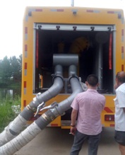 3、發(fā)電機(jī)組 發(fā)電機(jī)組功率選配,120KW,額定頻率50HZ,額電壓230/400V,康明斯發(fā)動機(jī)。調(diào)速方式:電子調(diào)速。啟動電瓶,電瓶總閘。 4、超輕型高速不銹鋼潛水泵 配4臺便攜式超輕型高速不銹鋼高頻率防腐蝕潛水泵,總流量可達(dá)1600立方每小時,單臺水泵功率為22KW,揚(yáng)程為8M,單臺水泵配直徑為200MM消防式水管2根,每根長度為25米。 5、接地裝置 接地樁和接地電纜線,連接車箱內(nèi)專設(shè)的接地樁頭,連接方便,在機(jī)組工作時,接地線連接,保護(hù)作業(yè)安全。機(jī)電設(shè)備有嚴(yán)密的防漏電保護(hù)措施。在作業(yè)中,整車接地線,采用低壓接地線,配備可拆。卸式接地針,直徑不小于10mm。 6、控制系統(tǒng) 采用智能控制系統(tǒng),集中控制,中文界面,具有自動障礙保護(hù)功能,選用優(yōu)質(zhì)電器元件,性能穩(wěn)定,安全可靠。 7、抽水管 水泵進(jìn)水口為一分兩個八寸,抽水管采用八寸美國進(jìn)口透明水管,質(zhì)量輕,拿取方便,配3.5米長水管4根。接頭采用東方式快速接頭,使用方便,密封效果好;每個進(jìn)水口配置鴨嘴式接頭,實(shí)現(xiàn)低水位抽吸作業(yè)。各進(jìn)水口配90°彎頭。 8、排水管 水泵出水口一分四個5寸,每個出水口66米出水軟管(33m/卷,),軟管為快速接頭連接,操作方便,并在接頭處有防松保險(xiǎn)裝置,安全可靠。水管直徑125CM水管材質(zhì)為雙面PVC,耐磨,耐壓10kg,快速接頭為凸輪接頭。 9、箱體 廂體外部鋼材為優(yōu)質(zhì)冷軋鋼板,內(nèi)襯優(yōu)質(zhì)冷軋鋼板折彎骨架,工藝先進(jìn),強(qiáng)度牢固。廂體為全密封結(jié)構(gòu),具備運(yùn)輸、防雨、防腐、防火、防銹要求。車廂尾部安裝鋁合金卷簾門。發(fā)電機(jī)組進(jìn)排風(fēng)消聲處理,消聲器做降噪處理。車廂水泵兩側(cè)設(shè)開門,發(fā)電機(jī)進(jìn)風(fēng)口和排風(fēng)口防雨百葉窗,工作門下,尾部設(shè)有隱藏式抽拉梯,與車廂底板框架連接。 10、外供電源 箱內(nèi)配備滿足5KW功率輸出、電壓380V插座1只,220V通用插座1只。 11、內(nèi)部照明 車廂內(nèi)飛利浦LED照明燈。在啟動發(fā)電機(jī)組時采用發(fā)電機(jī)組供電,發(fā)電機(jī)組停機(jī)時采用車輛直流電瓶電源供電,可實(shí)現(xiàn)便捷切換。 12、液壓支撐 車輛安裝四只液壓支撐腿,可在駐車狀態(tài)均分車輛靜壓,保護(hù)車輪及彈簧鋼板。選用進(jìn)口優(yōu)質(zhì)意大利多路閥組,液壓支撐缸采用進(jìn)口密封件,單缸靜載荷5噸,加裝雙向液壓鎖。 13、外部照明燈 車廂后頂部安裝升降照明燈,燈具功率150×2=300W;光源形式 LED燈(二聚光、二泛光);燈桿舉起高度1800mm水平旋角 360°;垂直旋角 330 |