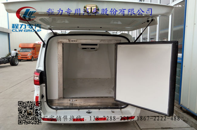 2.上裝配置:冷藏廂內部有效尺寸:長1.83米×寬1.15米×高1.05米,2.2立方,廂體蒙皮內玻璃鋼,外不銹鋼,花紋鋁底板或者玻璃鋼底板,8cm聚氨酯保溫,不銹鋼門鎖件,配后雙開門,-10度制冷機組。