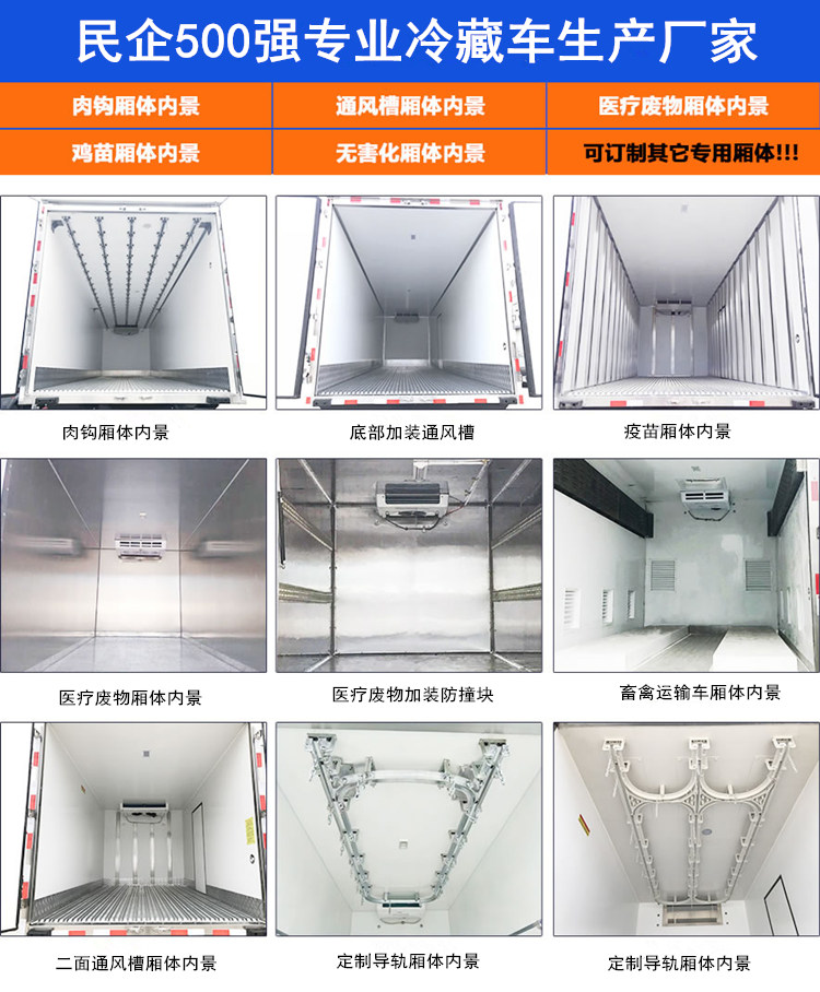 102后橋,ABS,駕駛室自帶方向助力、中控鎖,采用知名品牌制冷機組,保鮮溫度可達零下5度,冷凍