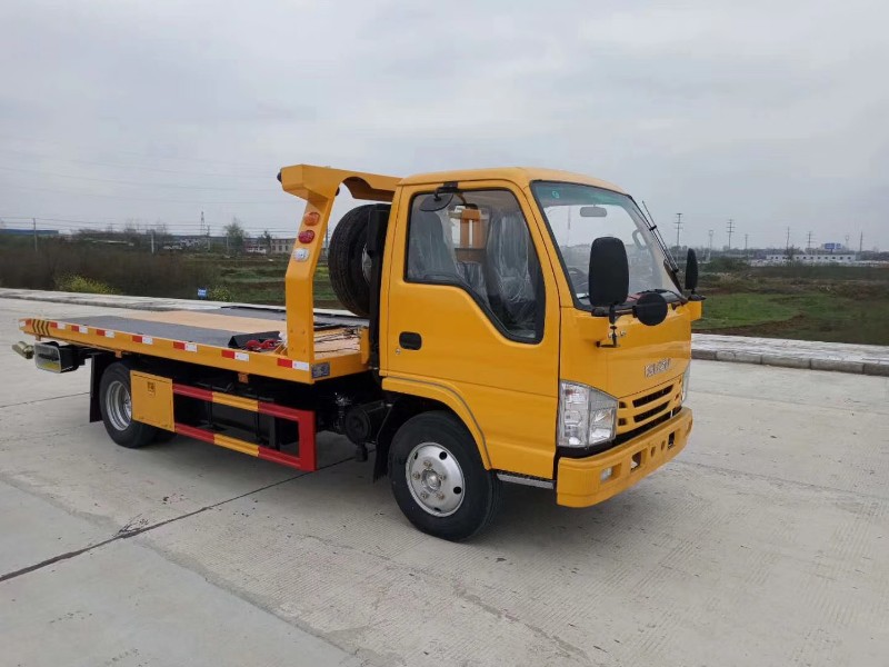 國六五十鈴藍牌一拖二清障車底盤配置:100P駕駛室,3360mm軸距,五十鈴120馬力發(fā)動機,五十鈴MSB五檔變速器,空調(diào),方向助力,多功能液晶儀表盤,ABS,700R16輪胎,單排,前橋2噸,后橋4噸,駕駛室可翻,油剎或氣剎。