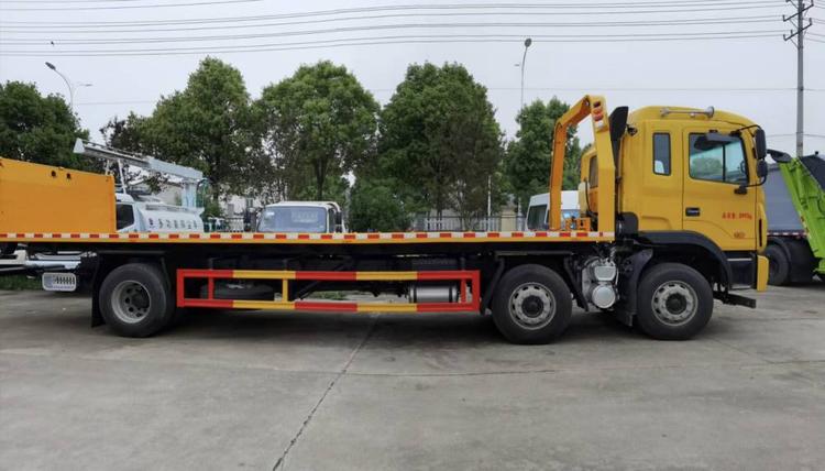 江淮K5小三軸,錫柴290馬力,法士特8檔變速箱 11.00輪胎,280大梁,空調(diào),ABS,行駛記錄儀,電動(dòng)玻璃升降,電動(dòng)翻轉(zhuǎn),氣囊座椅。 12噸上裝,12噸后托臂,重心低,受力平均,平板尺寸9.6米,平板寬2.55米,10噸液壓卷揚(yáng)。 湖北程力國六江淮K5小三軸平板清障車(平板長度9.6米)程力牌CL5250TQZH6ZQ型清障車圖片價(jià)格: