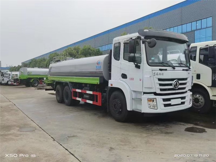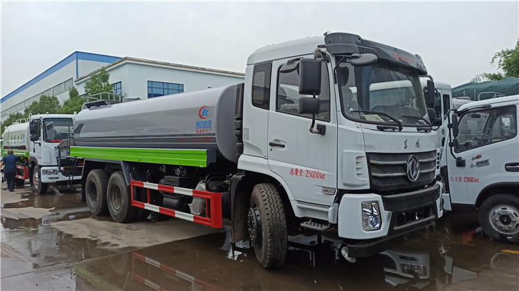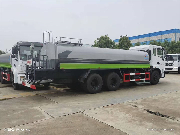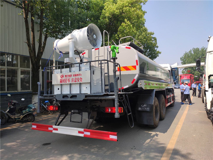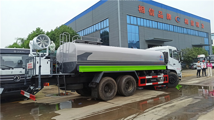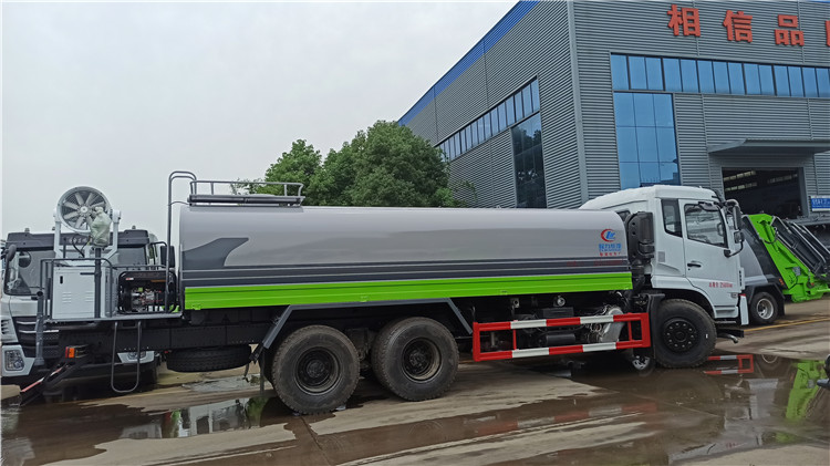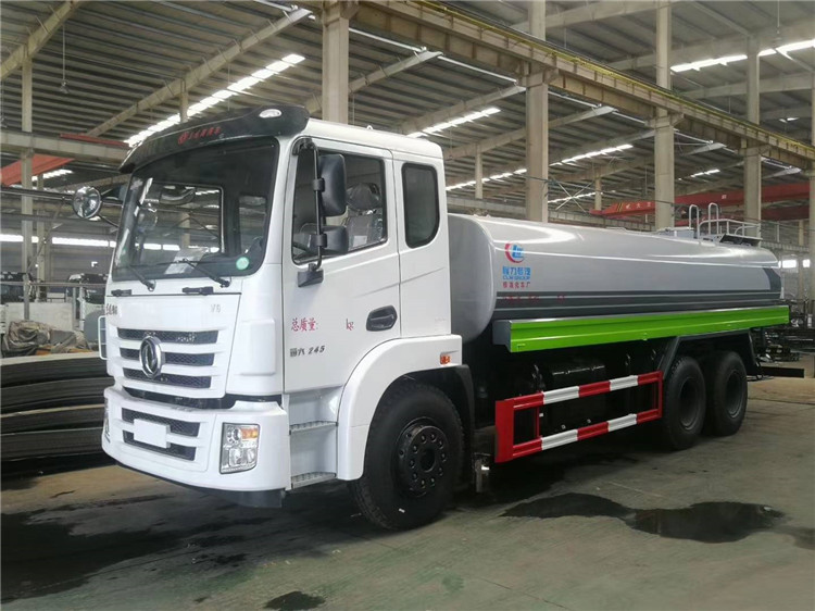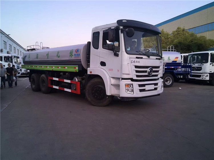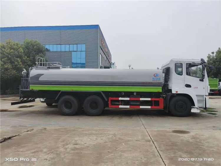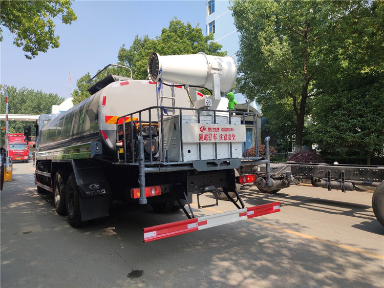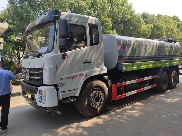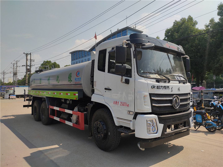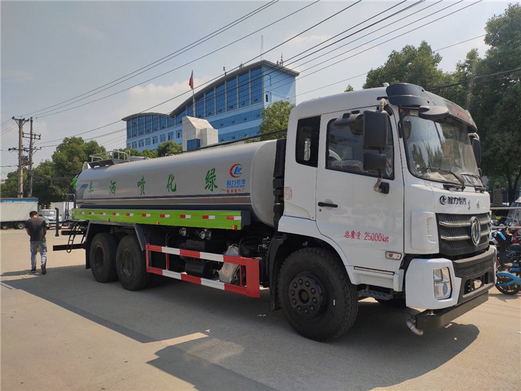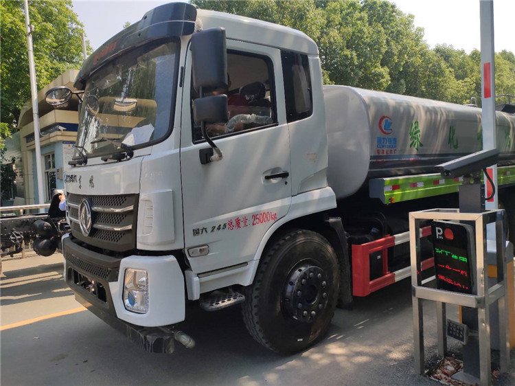 湖北程力國六東風錦程V6后雙橋18噸灑水車程力威牌CLW5253GPSD6型綠化噴灑車廠家配置: | 湖北程力國六東風錦程V6后雙橋18噸灑水車底盤配置:采用東風后雙橋原裝底盤,東風錦程齊星軍工V6四點懸浮駕駛室,4350+1350mm軸距,搭載國六(國Ⅵ)東風康明斯230/260馬力柴油發(fā)動機,功率169/191kw,國六排放,陜齒法士特八檔變速箱,11.00R20鋼絲胎,前橋5T,后橋雙10T,方向助力,斷氣剎,排氣制動,原裝空調,行駛記錄儀,多媒體顯示屏,電動門窗,中控鎖,氣囊座椅,ABS。湖北程力國六東風錦程V6后雙橋18噸灑水車專用配置:罐體容積:19立方米,罐體鋼板為4mm碳鋼Q235材質專用容積板一次成型,罐內隔板具有防波作用,以減輕汽車行駛時罐體液體沖擊;配大功率專用灑水泵,泵可自吸自排;整車前沖、后灑、側噴、后平臺帶綠化灑水炮,灑水炮可全方位旋轉,可連續(xù)調成直沖狀、大雨、小雨、毛毛雨;前封頭帶水位計,后平臺主管路帶1寸澆花接口,后爬梯,帶1個消防接頭,帶1個自流閥,1個過濾裝置。湖北程力國六東風錦程V6后雙橋18噸灑水車選裝配置:1、可選裝氣動球閥開關駕駛室內控制; 2、可選裝后平臺帶CLW-30、40型霧炮機組