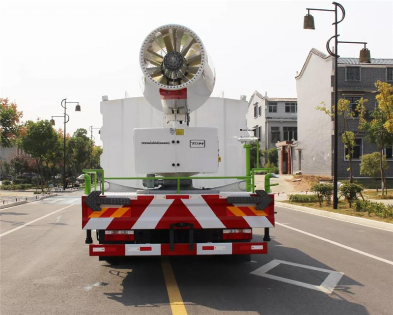 底盤配置:采用國六東風新款多利卡D9系列底盤生產,軸距4500mm,底盤發動機為康明斯230馬力,295真空胎,東風6檔變速箱,國六排放標準,罐體容積:10立方,罐體鋼板采用Q235碳鋼鋼板,采用方形瓦楞設計,外觀大氣靚麗,后工作平臺加裝高效率車載式風送噴霧機,噴藥炮霧化效果好,可遠程噴霧,東風多利卡D9抑塵車帶前沖后灑、側噴、平臺高炮、自流閥及消防接頭各1個、標配億豐泵或金龍泵,可選裝50-100米噴霧機。 上裝配置:罐體容積10立方,罐體為方形罐,罐體內部做防腐,主管路鍍鋅,帶前部沖洗路面噴灑裝置、后部扇形降塵噴灑裝置,兩側面噴灑裝置,帶后部工作平臺、平臺上安裝綠化灑水炮(炮噴射形狀可調),可調直沖狀、大雨、中雨、毛毛雨,可連續調節,采用中聯唯佳大流量水泵,消防接口可自流,音樂喇叭,50-100米噴霧機組。 噴霧機配置:TDM-M08型,可無線操作,及手動操作。根據需求選配的霧炮機霧化距離在60-120米不等(靜風室內距離),實際射程:(霧化射程會受濕度、溫度、風速等各方面天氣因素的影響,另外天氣干燥地區一部分在空中被蒸發掉)。CLW-100型60米,副發電機組功率50(Kw),風機功率15(Kw),不銹鋼多級離心泵功率5.5(Kw)。100米無線操作,霧化距離60米(靜風室內距離)實際射程:(霧化射程會受濕度、溫度、風速等各方面天氣因素的影響,另外天氣干燥地區一部分在空中被蒸發掉)。 湖北程力國六東風D9方罐抑塵車程力威牌CLW5180TDYD6型多功能抑塵車圖片價格:
