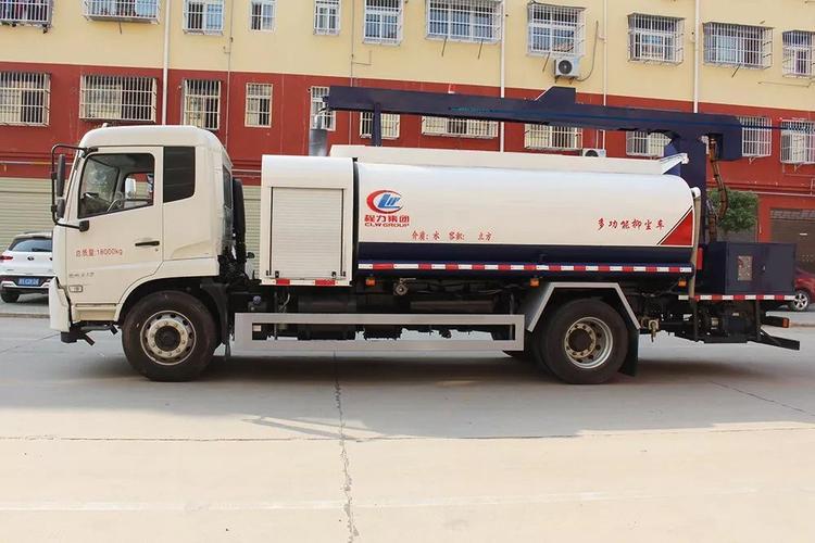 湖北程力國六【10方】東風天錦 鐵路抑塵車 免征:有 環保:有 噴霧灑水車:用于鐵路煤炭運輸煤揚塵污染防治,也廣泛用于其它散裝物料運輸過程防揚塵污染以及渣料場、儲煤場、建筑工地、汽車運煤揚塵、固沙、鋼鐵建材、水泥、企業各種露天料場生態護坡等方面。同時具備灑水車功能,在噴灑作業時可實現360度旋轉,后平臺高炮可同時進行旋轉,并可電子遙控操作,射程25-120米均有。 湖北程力國六東風天錦多功能鐵路抑塵車程力威牌CLW5185TDYD6型多功能抑塵車圖片價格: