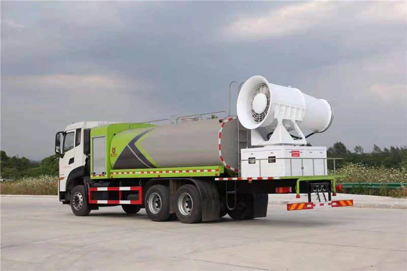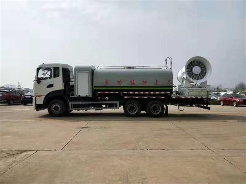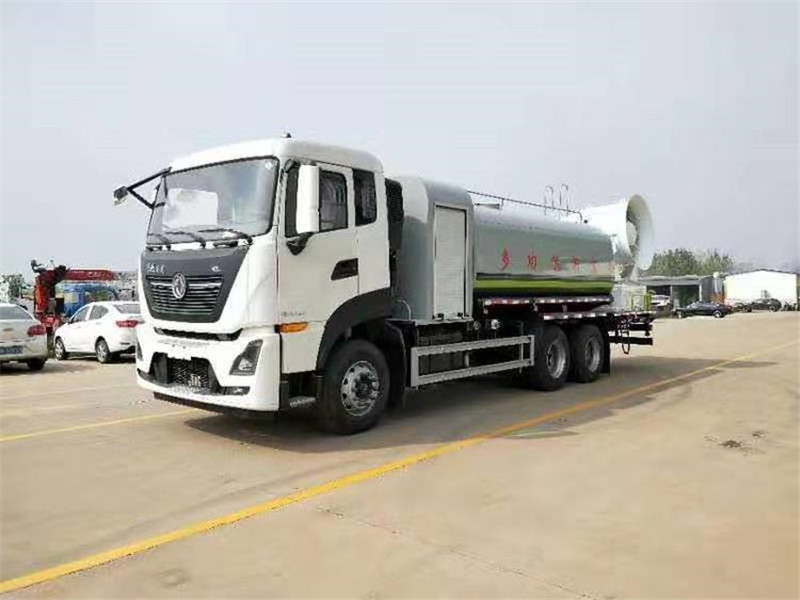 國六東風天龍后雙橋多功能抑塵車,采用東風天龍后雙橋底盤,配國六康明斯290/300/350馬力發動機,4350+1350mm軸距,11.00R20鋼絲輪胎,陜齒9檔變速箱,7噸前橋,10噸后橋,助力轉向,電動玻璃,斷氣剎,原廠空調,氣囊座椅,ABS,定速巡航,行車記錄儀等。罐體容積16噸,罐體采用外防銹內防腐處理,武鋼5mm優質碳鋼板制成。進水方式可自抽,消防接口,罐頂自流三種方式,標配前沖后灑,側噴花灑,罐體后工作平臺,平臺上安裝灑水炮和車載噴霧炮,雙炮均可全方位旋轉,霧化效果可調節,可選配60--120米噴霧機。